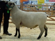 Ein sehr korrekter, großer und langer Bock. Stolzer Bundessieger mit Tageszunahmen in der Feldprüfung von 600 g Zuwachs jeden Tag. Sein starker Knochenbau mit guten Fleischpartien, sein breites Becken mit guten Innen- und Außenkeulen sind eine Klasse für sich. Er ist ein Sohn von Bodo. Bewertet wurde Bond in Leipzig genauso wie bei der Körung mit: 8 in der Wolle, 8 in der uskelung, 8 im Exterieur. Gewicht in Leipzig mit 15 Monaten: 114 kg